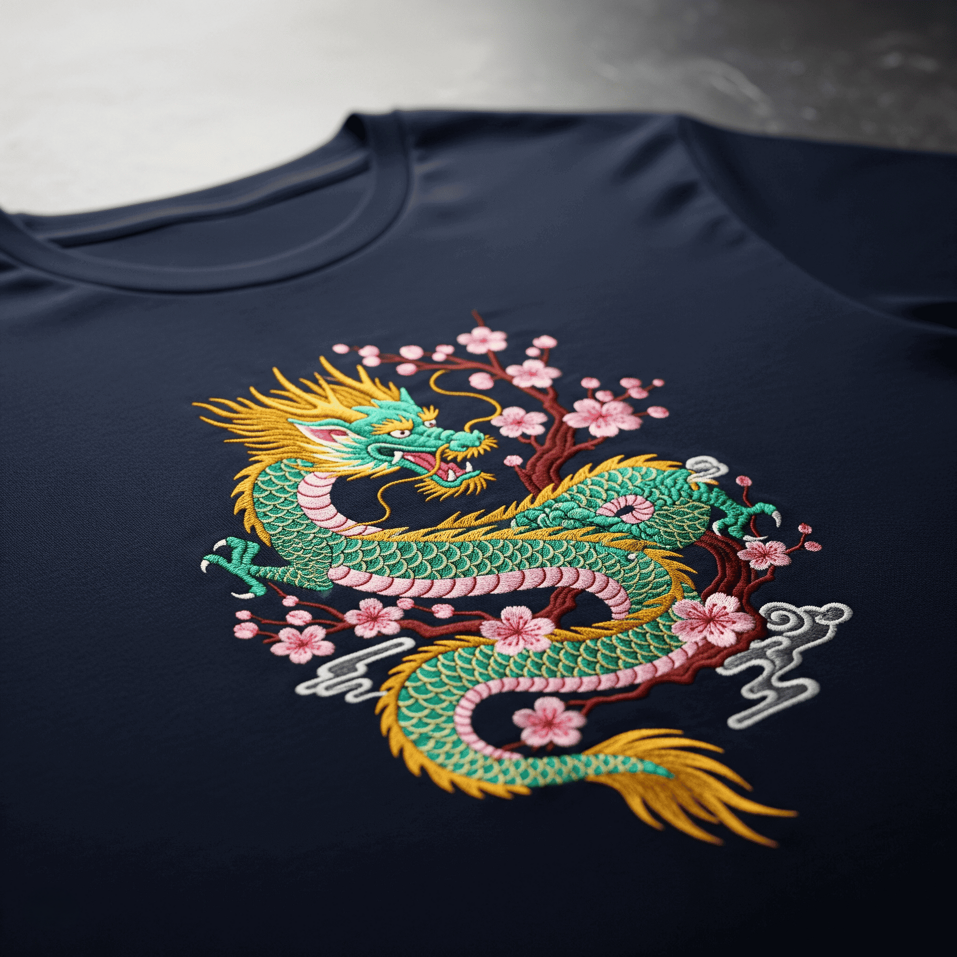 Unleash mythical power with the Mystic Dragon Tee. Our detailed dragon design is brought to life through intricate embroidery, showcasing every scale and curve of this legendary creature. Perfect for fantasy enthusiasts or anyone who wants to add a touch of ancient mystique to their everyday style.
