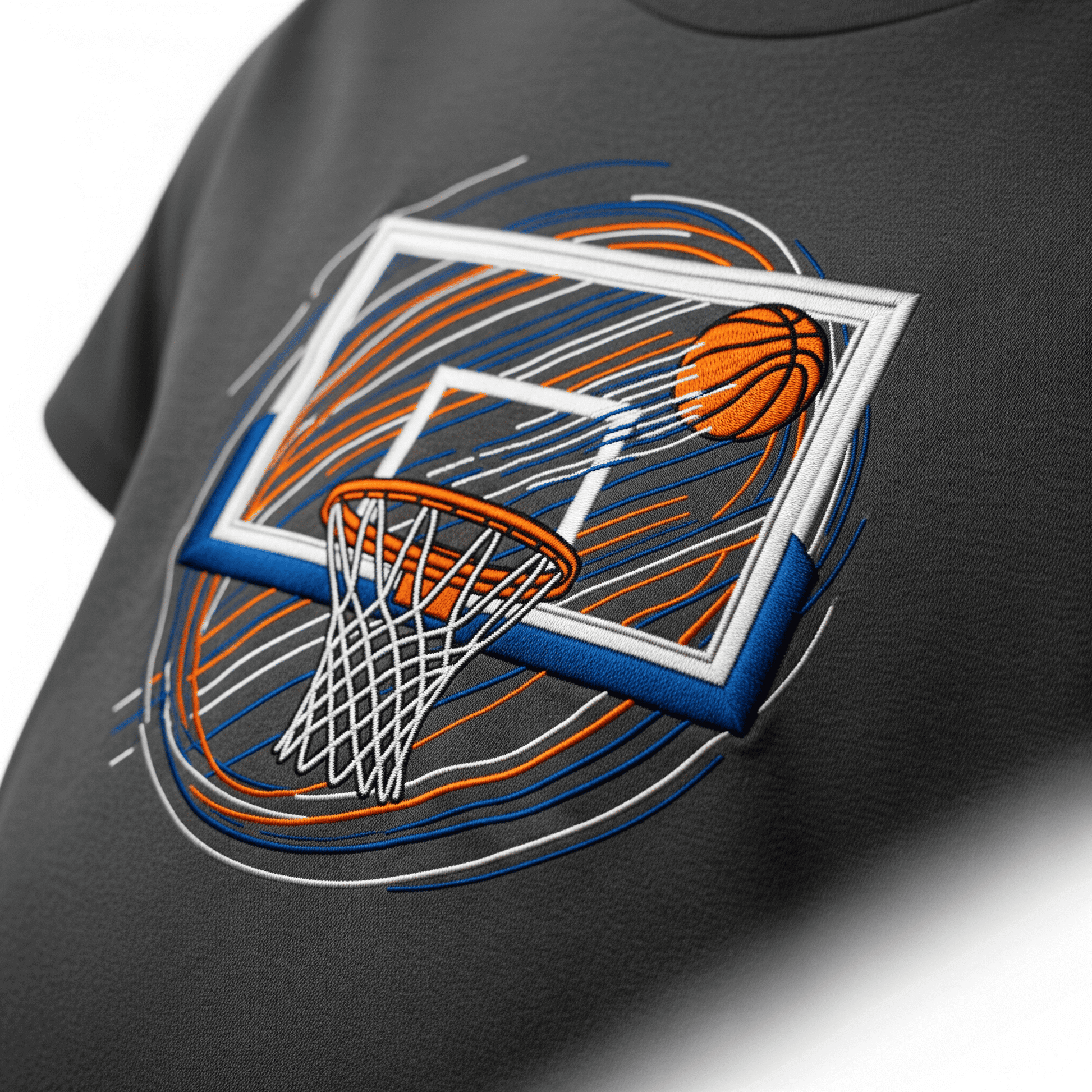 Dominate every dribble with the Court Conqueror Tee. Imagine this premium charcoal grey shirt showcasing a dynamic, embroidered basketball mid-flight, surrounded by lines of pure kinetic energy. Itโs the perfect slam-dunk of style for any true fan.